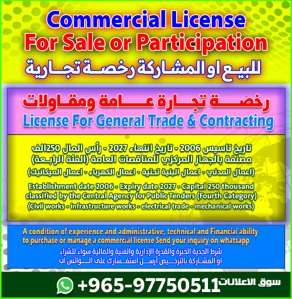 للبيع او المشاركة رخصة تجارة عامة ومقاولات