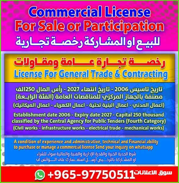 Commercial Licenses For Sale Or Participation License For General Trade Contracting